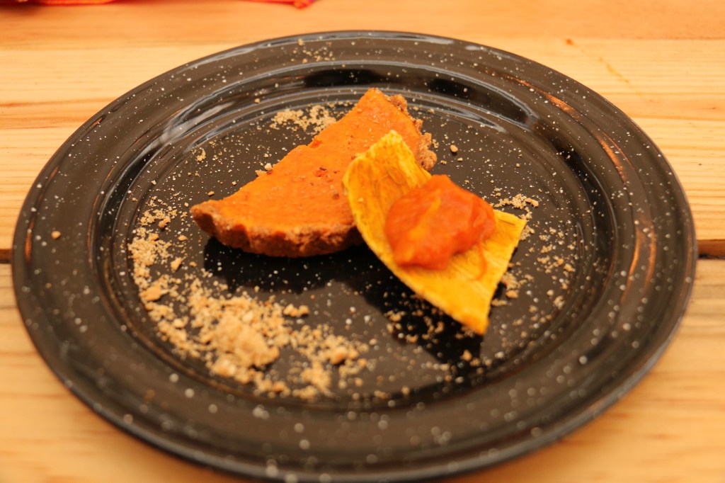 El menú fue: Quesadillas de Dalias y maíces de colores; Bocoles; Carne de puerco con setas; Gordita de Mole; Barbacoa estilo Sinaloa: Carne deshebrada con chile; Box But (Relleno Negro); Mole Tabasqueño; y, Pay de Calabaza.